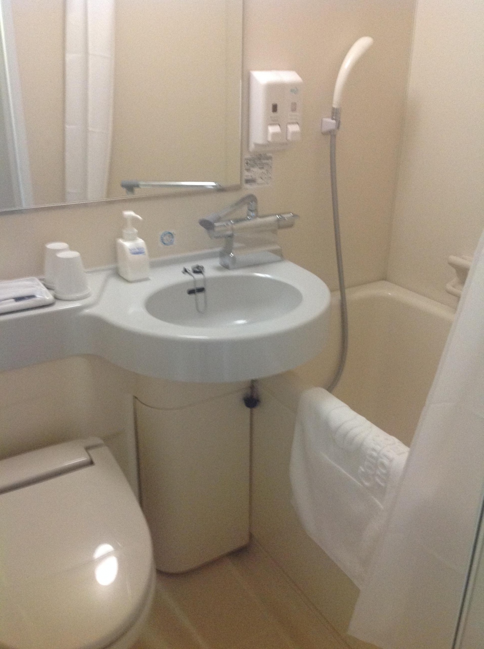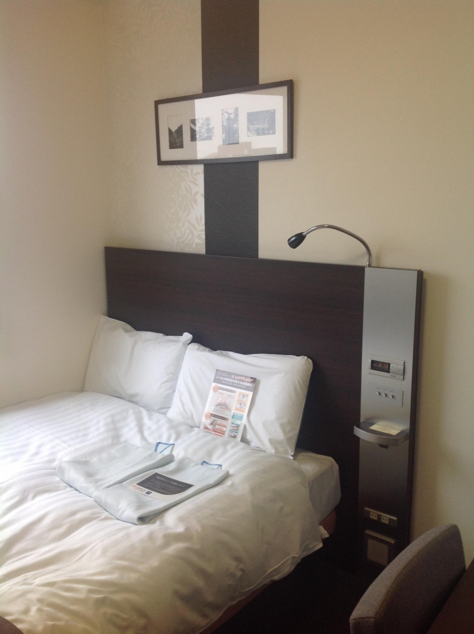 客室はとてもコンパクトで ベッドが 窓側にピッタリとついていたせいで