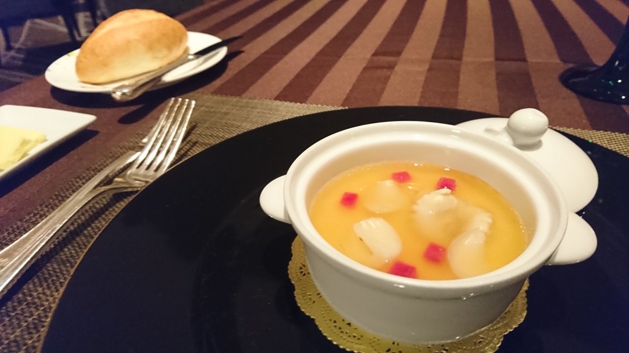 夕食5000円のコース料理 メニュー良かったんだけどなぁ・・・味は普通かなインパクト無いですけどお手頃感有ります。