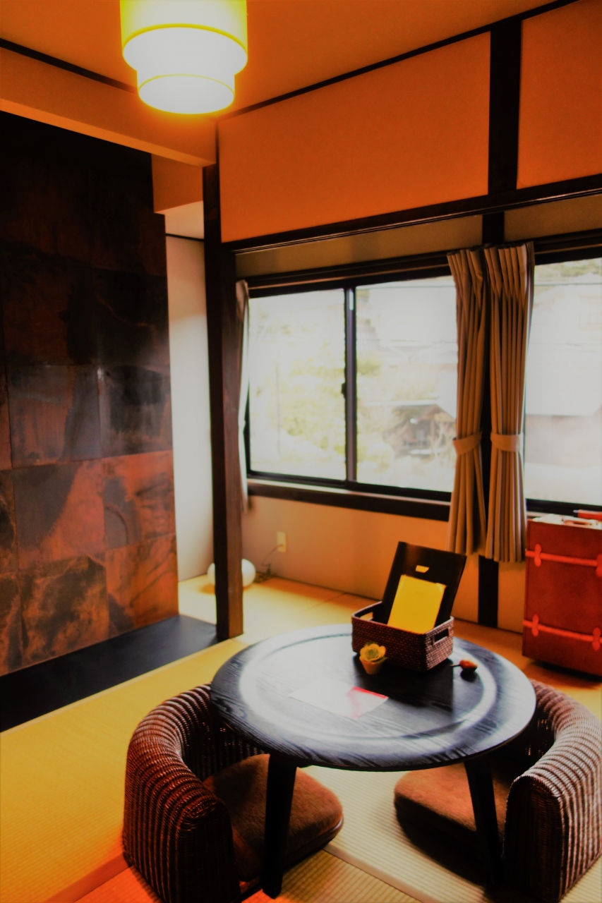 ガイドブックで1日5組限定の宿で、別府唯一の緑礬泉という言葉に惹かれ