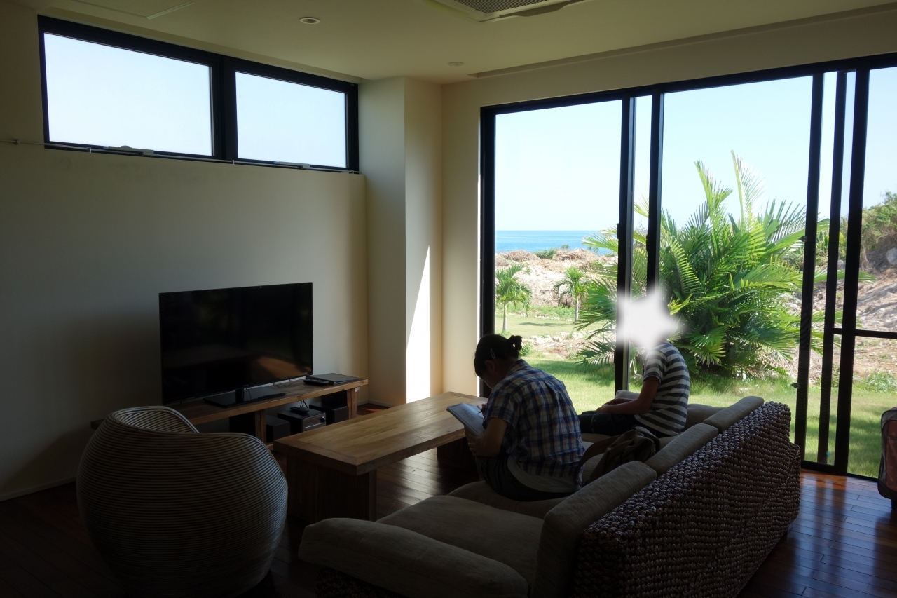 伊良部島のおしゃれなコンドミニアムです。これぞリゾート、な空間がうれしいです。1階がリビング、キッチン(ダイニングはありません)、バスルームで、2階にベッドルームが2つあります。洗濯機(部屋にはありません)も利用できて助かりました。朝食は隣のcafeでいただきました。洋食と和食を交互に出しているらしく、この日は和食でした。cafe2階からの景色は絶景でした。