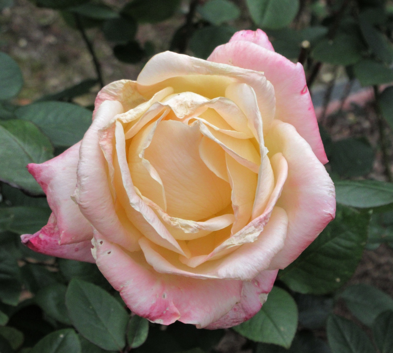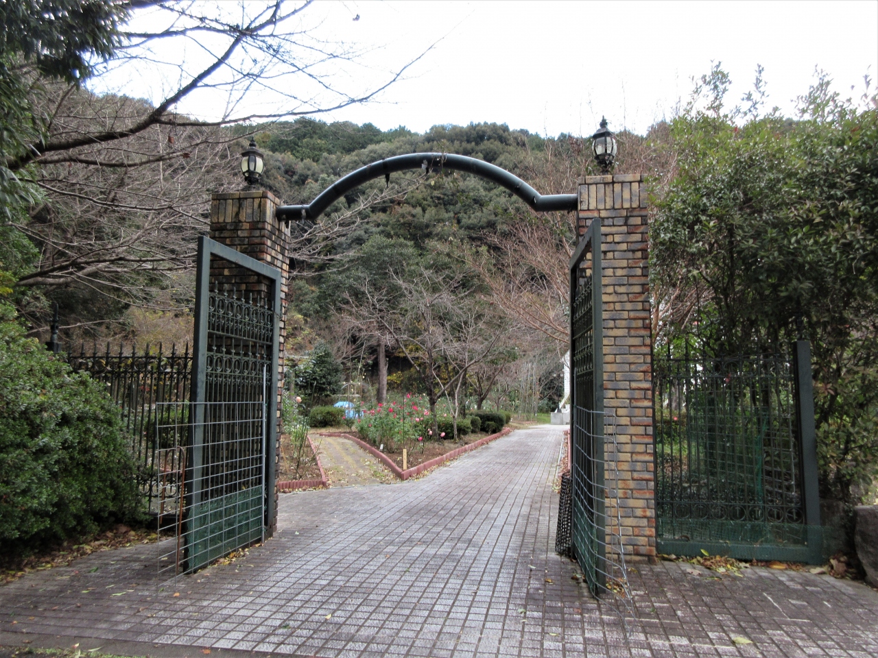 一覧を見る小高い所にあり川上峡が見えます。バラ園では12月でもまだ花が咲いていました。