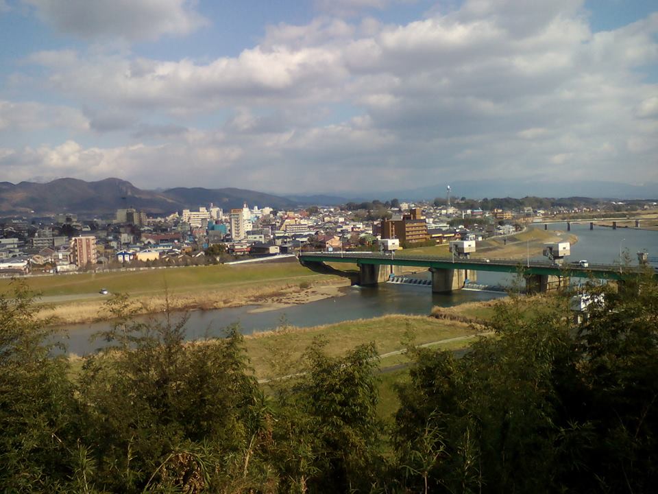 菊池川越しに山鹿市街と阿蘇外輪山が望めます。