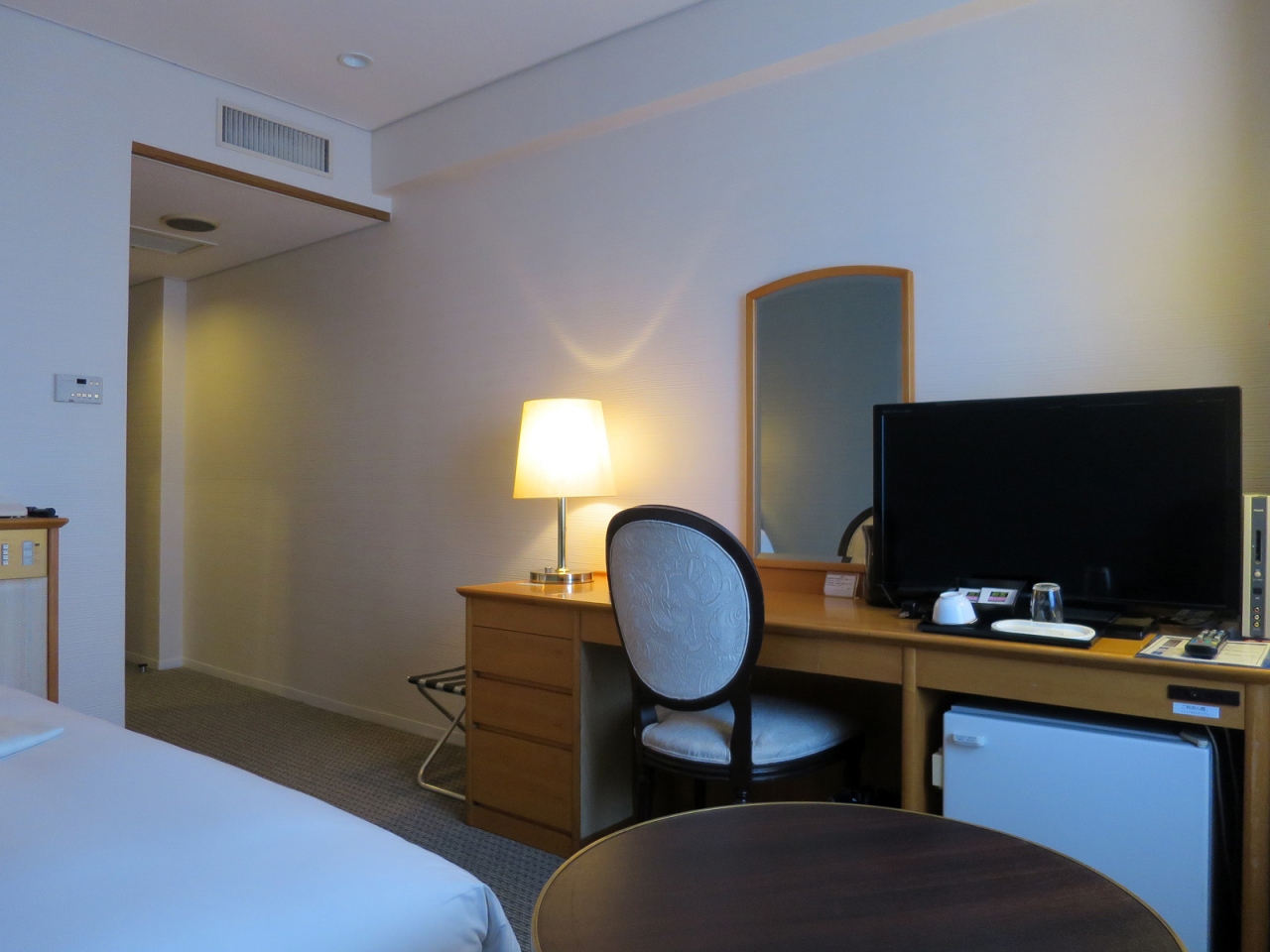 - 客室はシングルルームとしてはまずまずの広さ、椅子もソファーも客室面積に不釣り合いなほど立派、これで無料のコーヒーでもあれば良かったなぁ