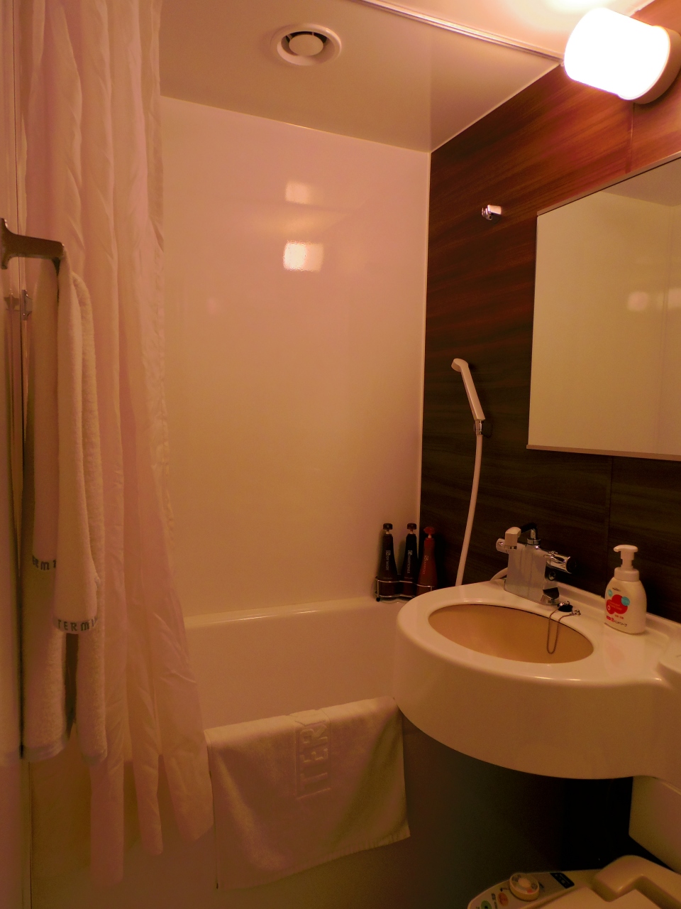 客室は、ユニットバスとベッド、テレビなどを置いた机、小型冷蔵庫と典型的なビジネスホテルのつくり、朝までゆっくり休むことができました。