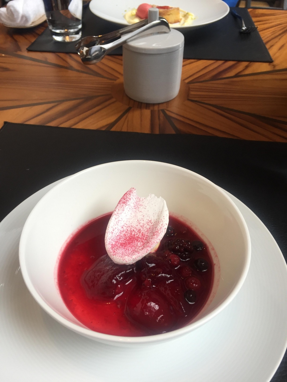 ランチは満足の内容でした。でも、メインのお肉料理より、パンに付いていたスモーク風味のバターやデザートのベリーのフロマージュのほうが記憶に残る美味しさでした。素敵なお庭を眺めながらの幸せな時間でした。