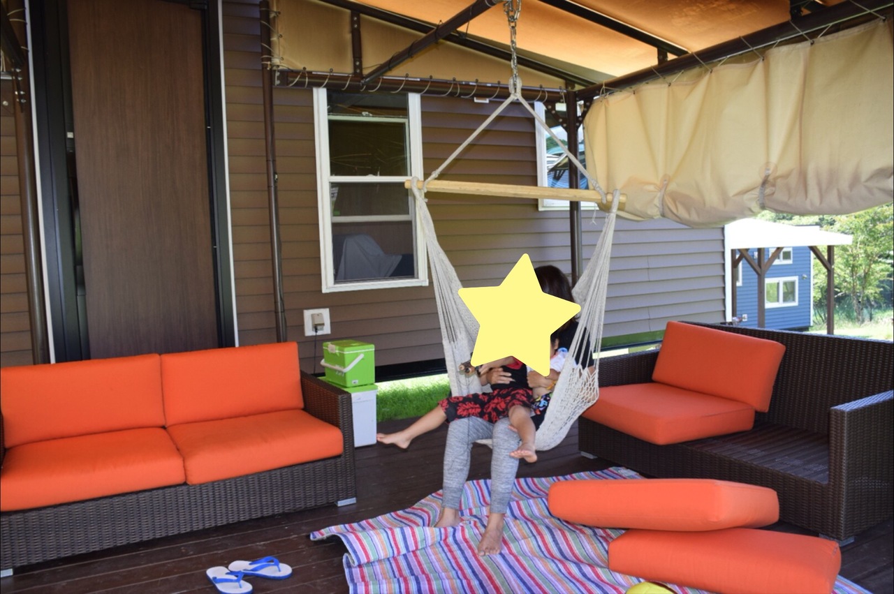 夏休みは予約をとるのがかなり大変なので7月初めにいきました。ここのキャンプ場で1番高いトレーラーコテージグランデ‼︎子供達が争奪戦するハンモック、ハイテクなBBQグリル、ソファがあり自然の中でゆっくりできる。お部屋にもキッチンがそろいシャワー、トイレがあるので赤ちゃんがいる我が家にはお風呂に困らなくていい。翌日は隣のぐりんぱで、思いっきりあそべます。毎年リピートしてます。テントでのキャンプも楽しいが赤ちゃんがいる場合はこちらがおススメです。
