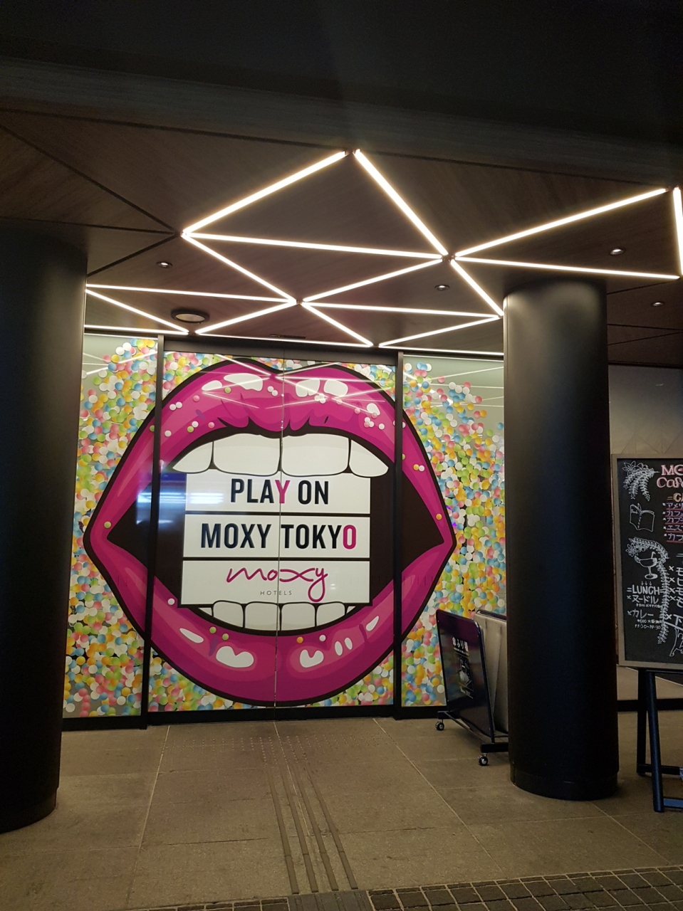 錦糸町駅から歩いていれば約数分、お水街やラブホテル街のど真ん中にあるマリオット系ホテル、モクシー東京!!!