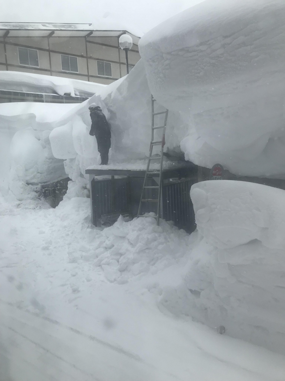 路線バスの停留所は通りにあり、雪に埋もれそうで、雪下ろしが大変そうでした。