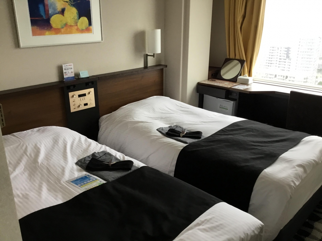 仕事関係で宿泊しました。アクアスクエアのお部屋は綺麗でした。新しく感じたツインベッドルームで、シャワーのみですが、大浴場に行くので充分です。夕食はブッフェでは無... もっと見る