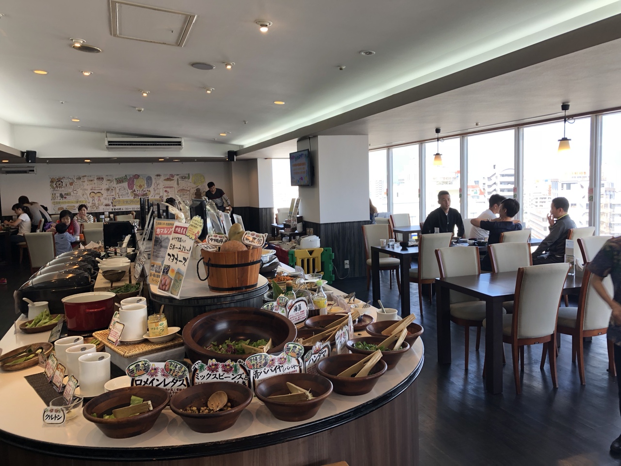 牧志駅から北東に歩いて15分程度のところにあります!ここの良さはホテルのサービスの良さとバイキングの美味しさです!!はじめに少しマイナスな面を申し上げますと部屋の広さ自体はそれほどです。ただ、そのマイナスな面なんて気にさせないほどプラスの面を述べて行きます。まず、まくらの硬さ、歯ブラシの硬さ、そして、シャンプーを自分の好みで選ぶことができます。次に無料カフェ、マッサージ機無料貸し出しなどもあります。そして、最後にホテルの最上階で食べることのできるバイキングは最高です!料理も100種類以上あり、沖縄のホテルではNo. 1の品揃えだそうです!