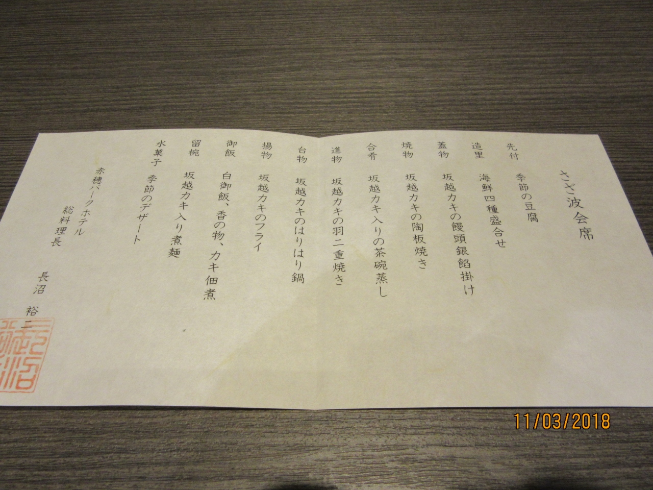 今年も赤穂の牡蠣のフルコースを予約。早割30日前で夕食【牡蠣のフルコース】と朝食バイキングで13,670円。最終的に飲み物料金をあわせて約19,000円だった。