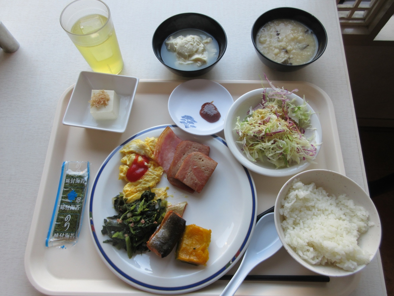 朝食:この価格にしては豪華です。沖縄っぽいメニューもありました。