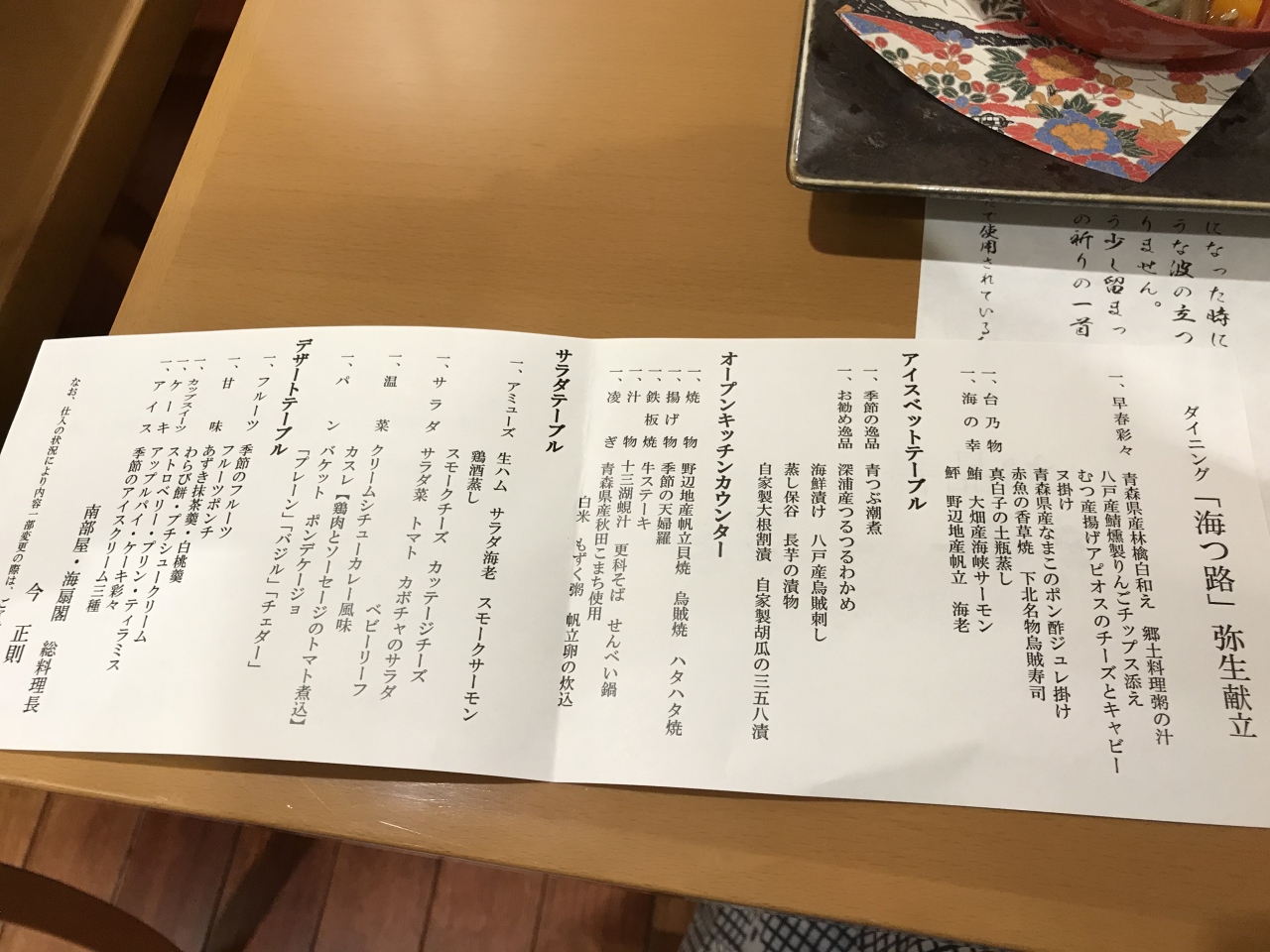 夕食は、ハーフバイキングで、前菜とお造りなどがテーブルにセッティングされていて、その他はバイキングでした。メニューも豊富で、天ぷらは、ホタテはもちろん珍しいリンゴもありました。