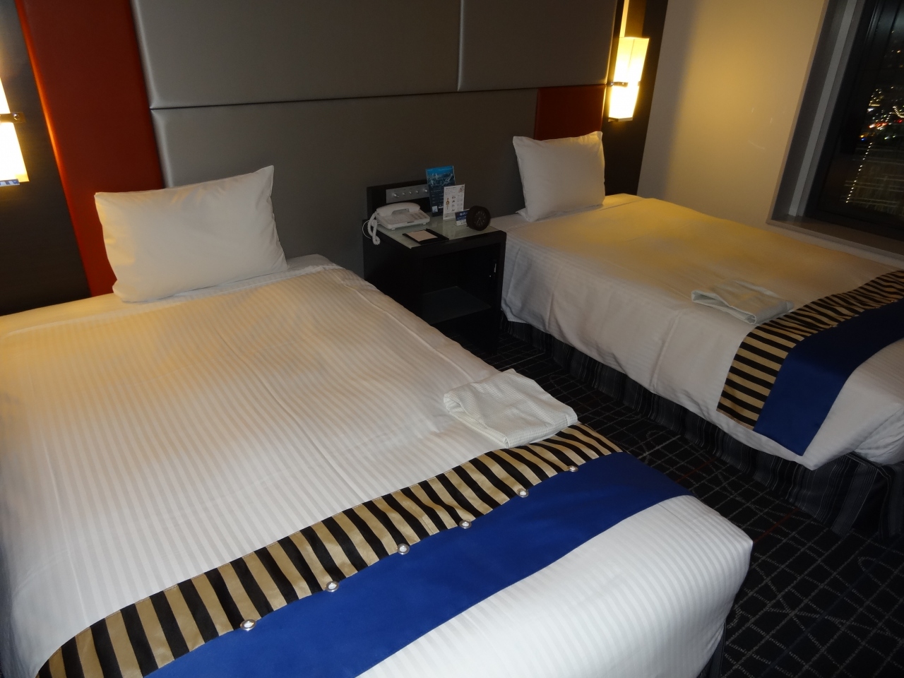 まるで絵はがきのような美しい夜景が部屋から望めます。ゆったりとして部屋で、おおきな4Kテレビがかかっています。ただ、エキストラベッドがあったためソファー代わりにはなりましたが、安っぽくてかえって部屋を狭くしました。シャワールームには大きな浴槽があるので助かります。アメニティも充実していました。朝食は質量ともにまずまずといったところ。とにかくこのホテルはアクセスが抜群なので翌日の活動がしやすいです。