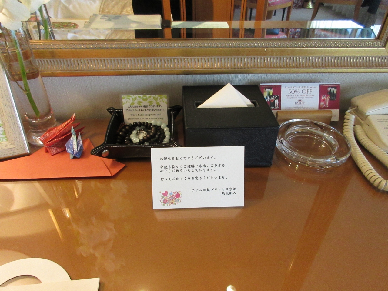 この度はホテル日航プリンセス京都をご利用いただきまして誠にありがとうございます。ご用意致しております設えをお気に入りいただきまして誠にありがとうございます。