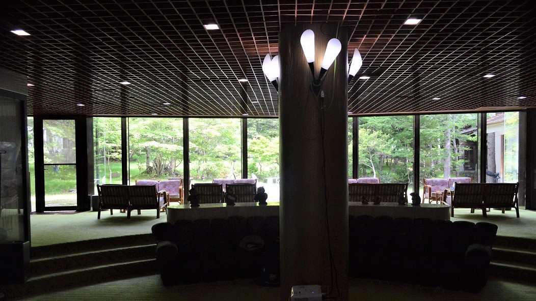大きな窓のロビーから眺める中庭は見事な景色で気分も良くなる。