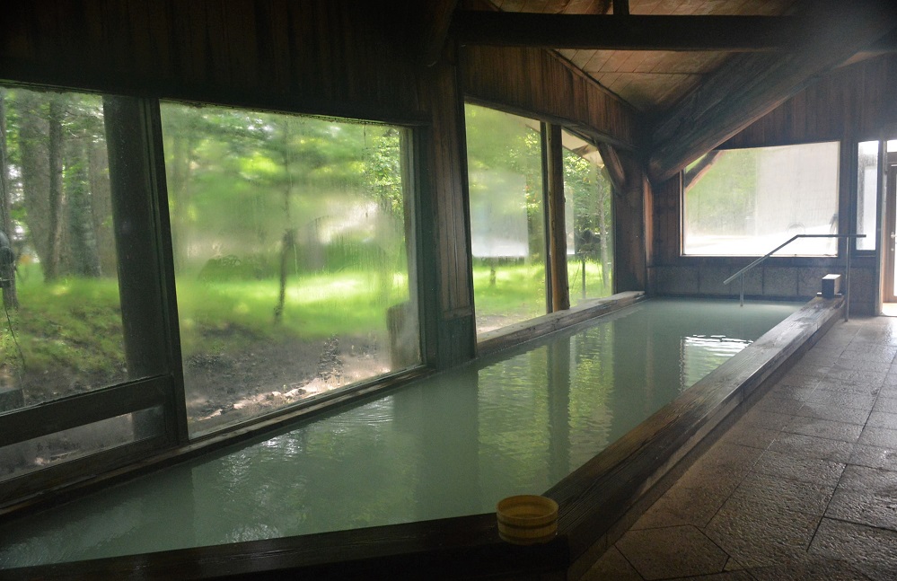 浴槽は大きくて余裕があり乳白色の硫黄泉の香りと相まって温泉の醍醐味を堪能できた。