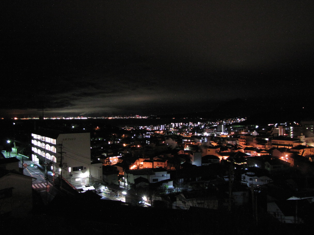 眼前の鉄輪温泉街から、高崎山・別府湾まで見渡せる。
