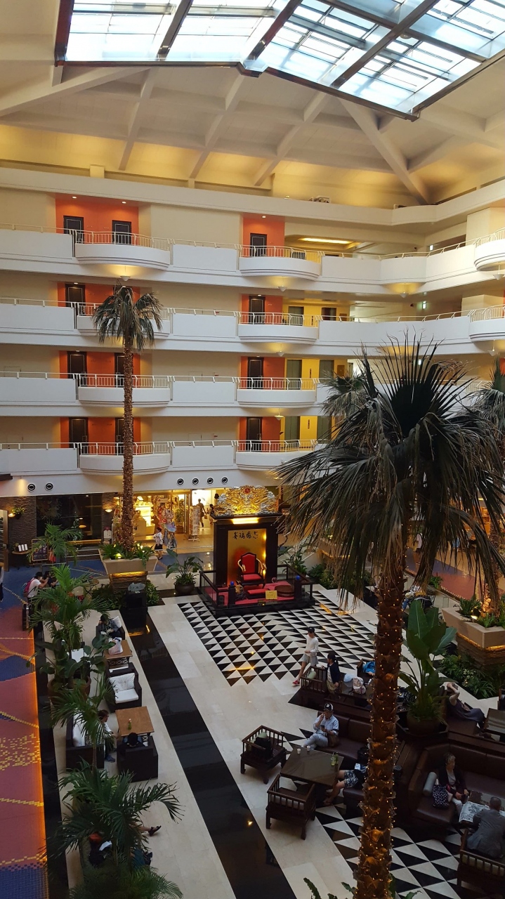 大型リゾートホテルです、那覇空港からは自動車で1時間30分くらいで恩納村の端に位置します。ホテルの敷地はとても広く出来れば1日ゆっくりとホテルで過ごすのが良いと思いました。部屋も広く清潔です。ちょっと難点はインバウンド効果なのか中国人観光客がとても多く宿泊していましたので、気になる方にはおすすめ出来ませんが、私達は全く気になりませんでした。お風呂は大浴場が2つありますが、期待しないでください。