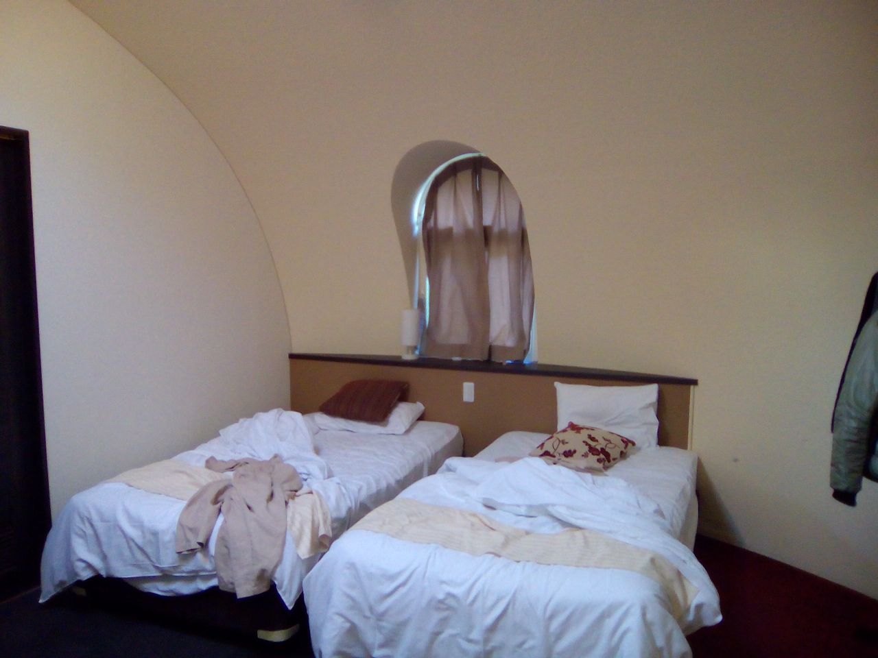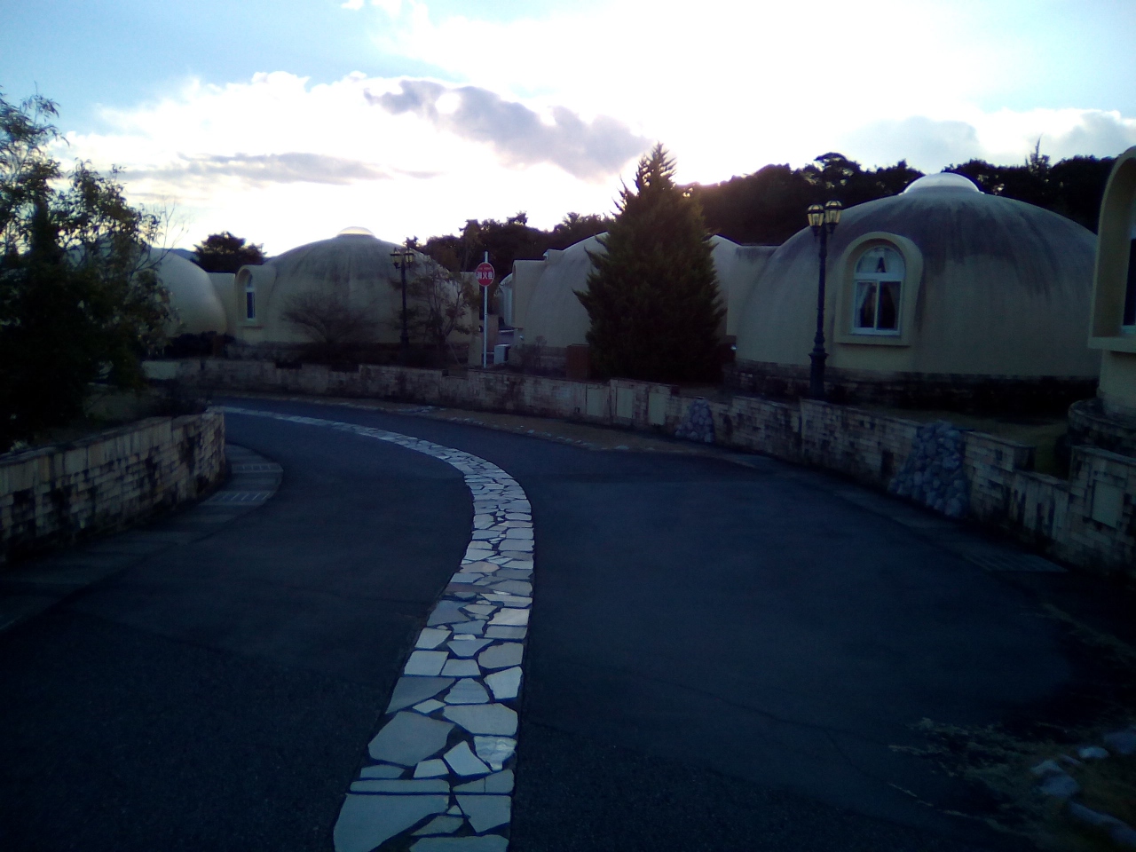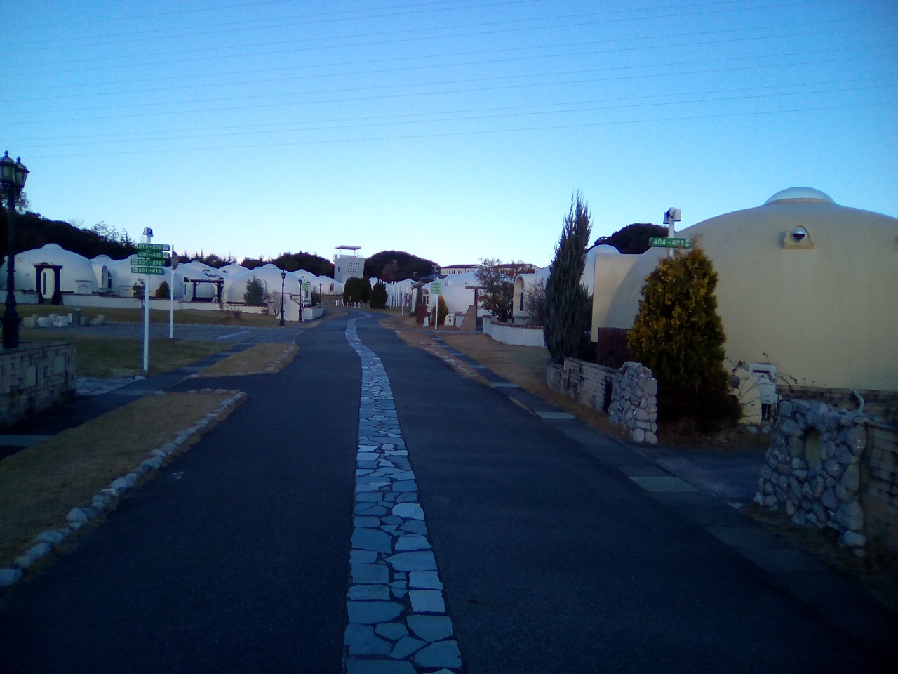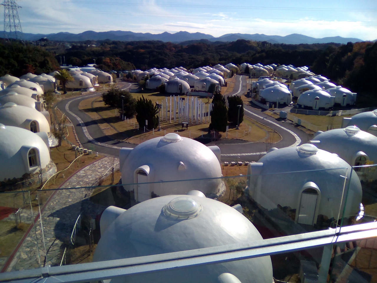 発泡スチロールを加工したお椀を伏せた様なバンガローが沢山並んでる宿泊施設です、