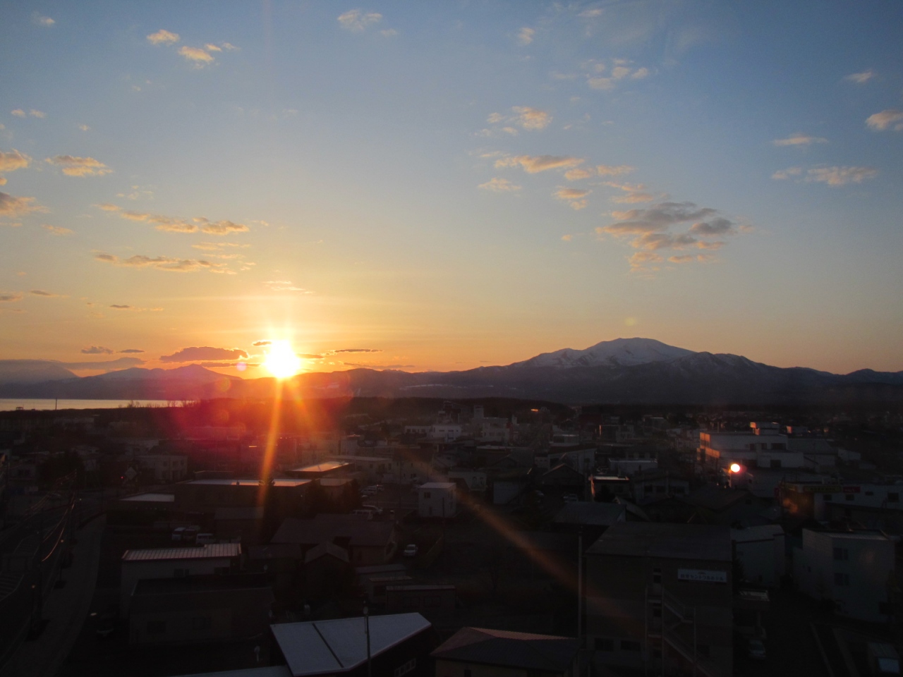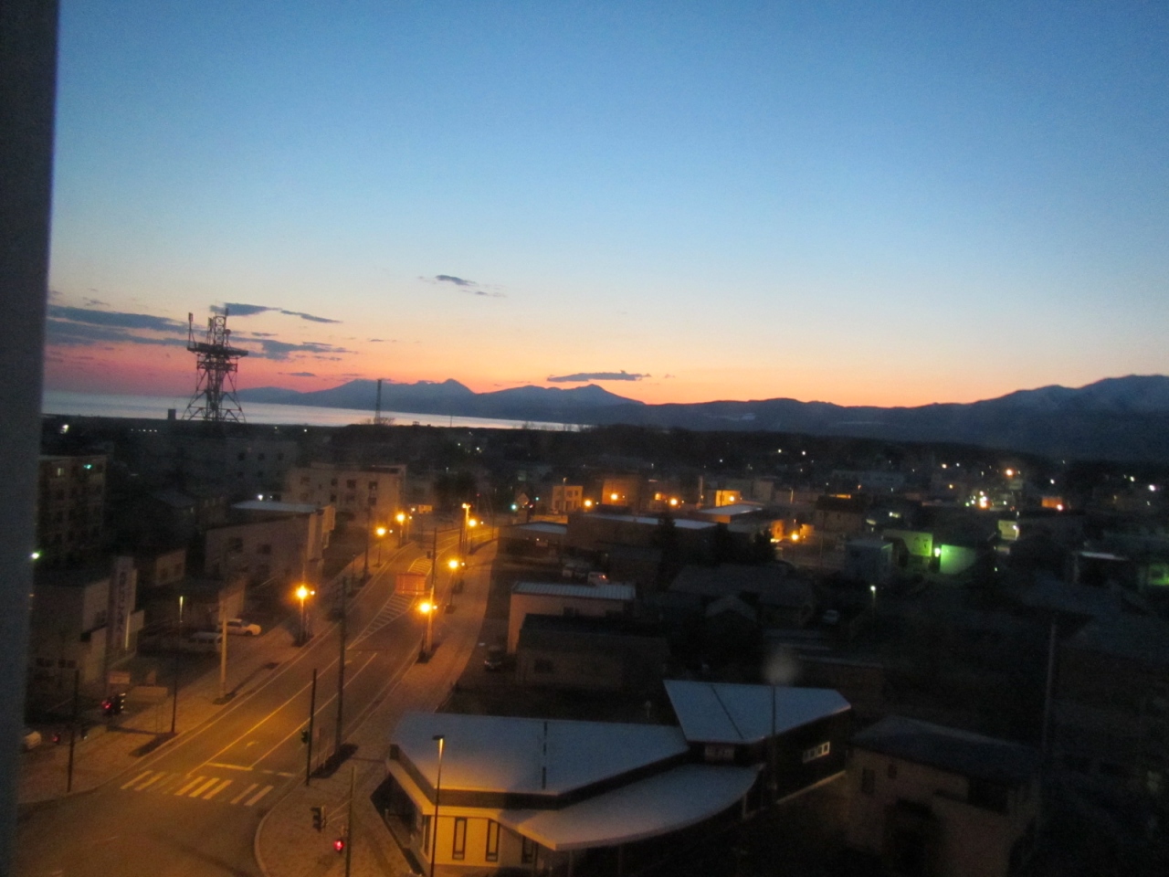 知床斜里駅に降り立つと、大きく背後に迫る斜里岳の雄姿に感動しますが、ホテルからはそれ以上です。