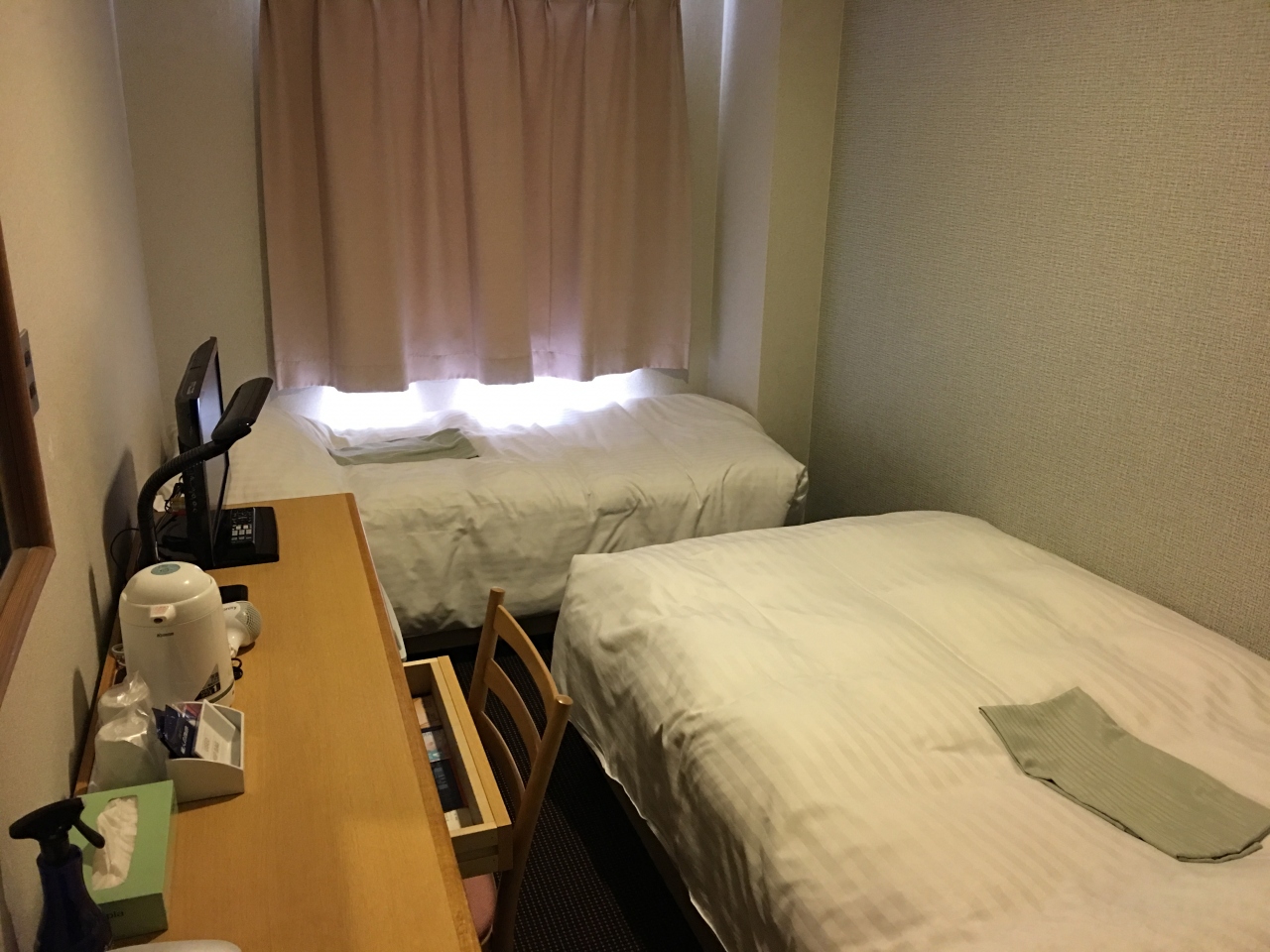 駅からは離れていますが、盛岡市の観光にもビジネスにも便利なロケーションにあるビジネスホテルです。格安なので利用しましたが、部屋は綺麗で広いです。一人で泊まったのですが、ベッドはセミダブルとシングルの2つがありました。