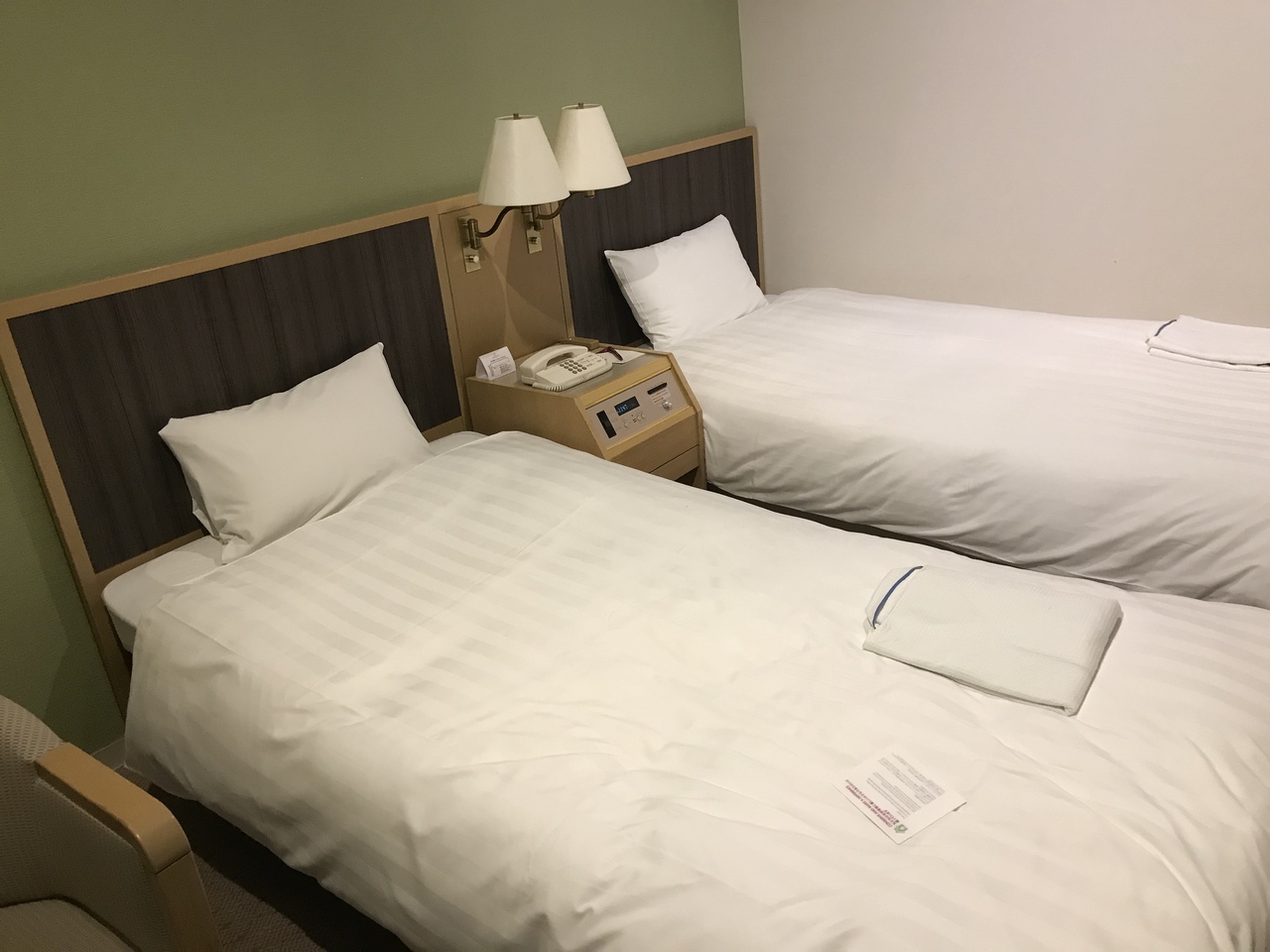 が、部屋にはデスクとベッドサイド2箇所に延長コードでコンセント口それぞれ3つというのはいいです。
