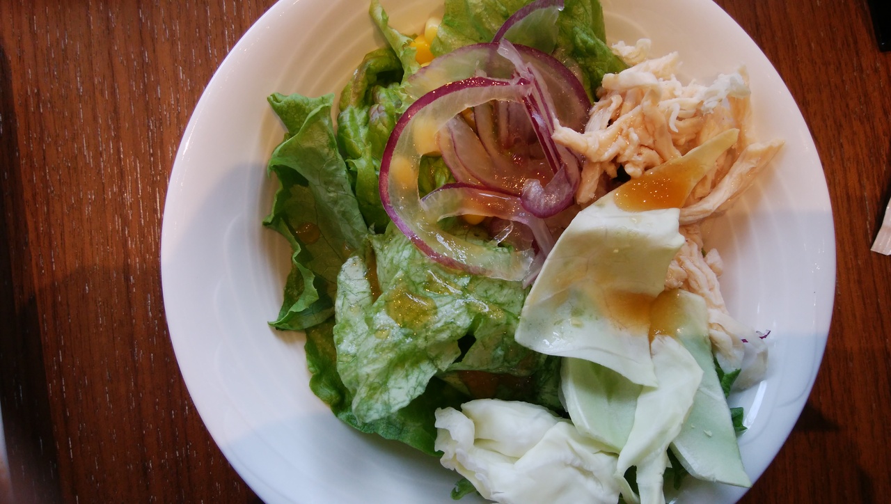 バイキングの朝食で出たサラダやグリルした野菜がとても美味しい