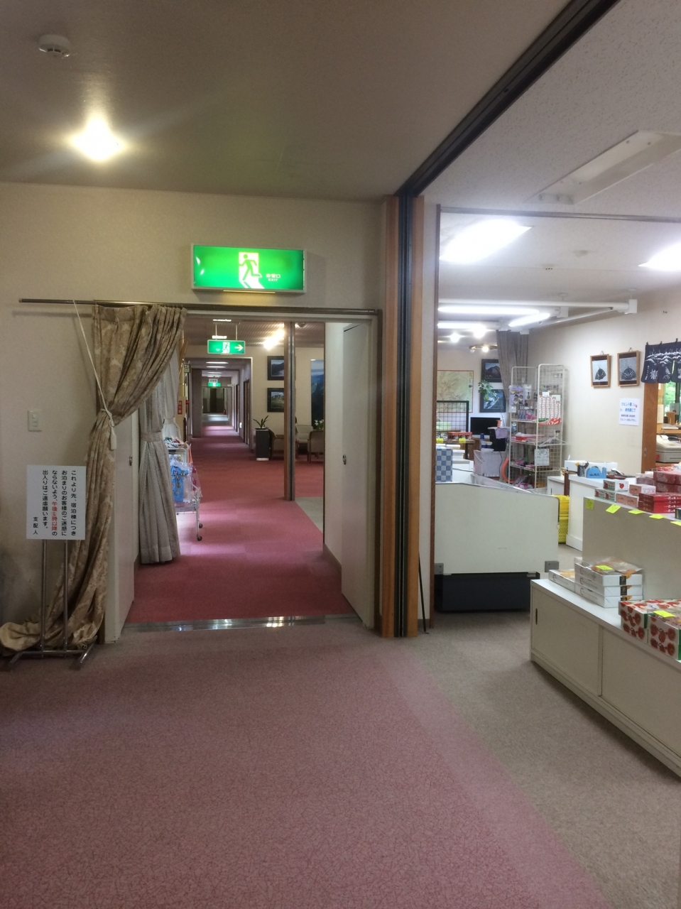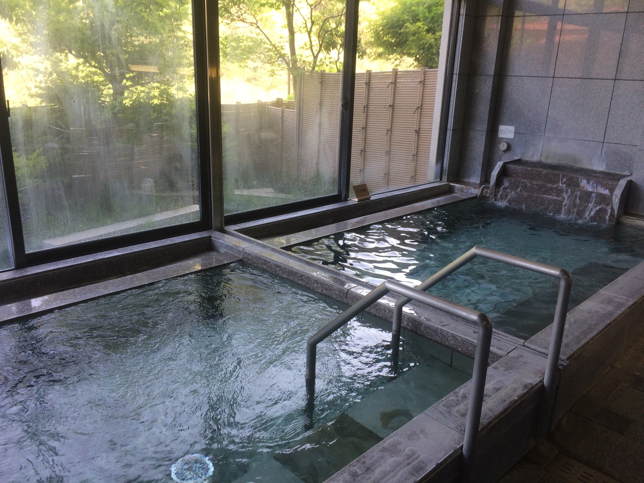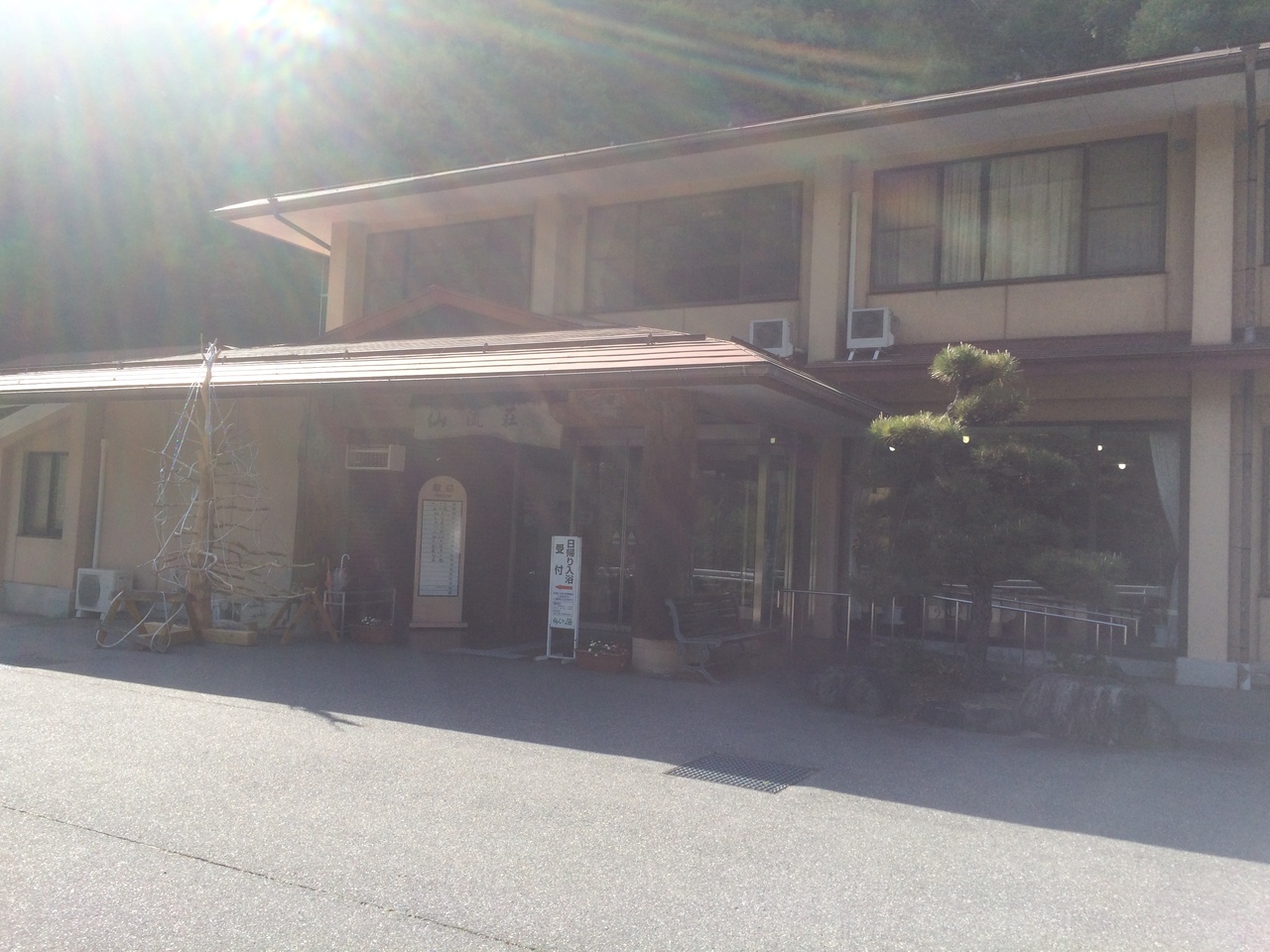 部屋は素朴な感じで窓からは、道路を挟んで渓流があり少し遠くを見ると山が見え良い雰囲気。フロント付近にはソファがあり土産が売っていました。温泉ではないですが浴場は綺麗でサウナもあり、露天風呂もありますが露天風呂は小さかったです。