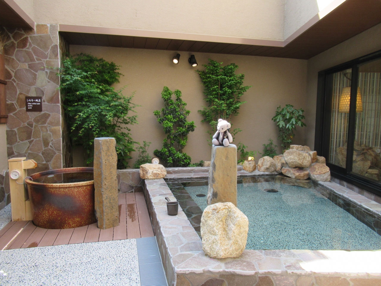 - 内風呂は別府の運び湯。露天風呂、サウナ、シルキーバスあり