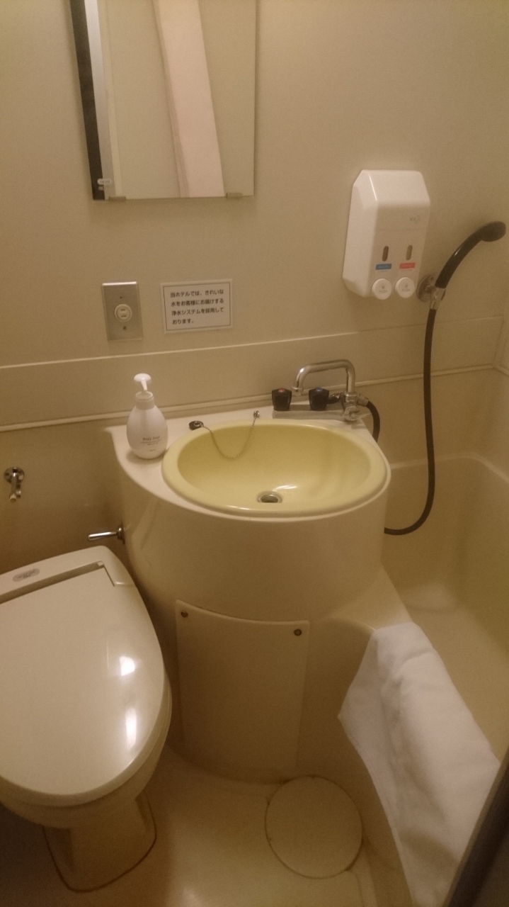 国道沿いにあるビジネスホテルです。1Fがコンビニ、2Fにサッポロビアレストランがありました。駐車場はホテル裏にあって、540円と格安。素泊まりプランの客には朝食がわりに、と一人一つ、菓子パンを選ばせてくれました。バスルームが狭いのが難点ですが、いいホテルでした。