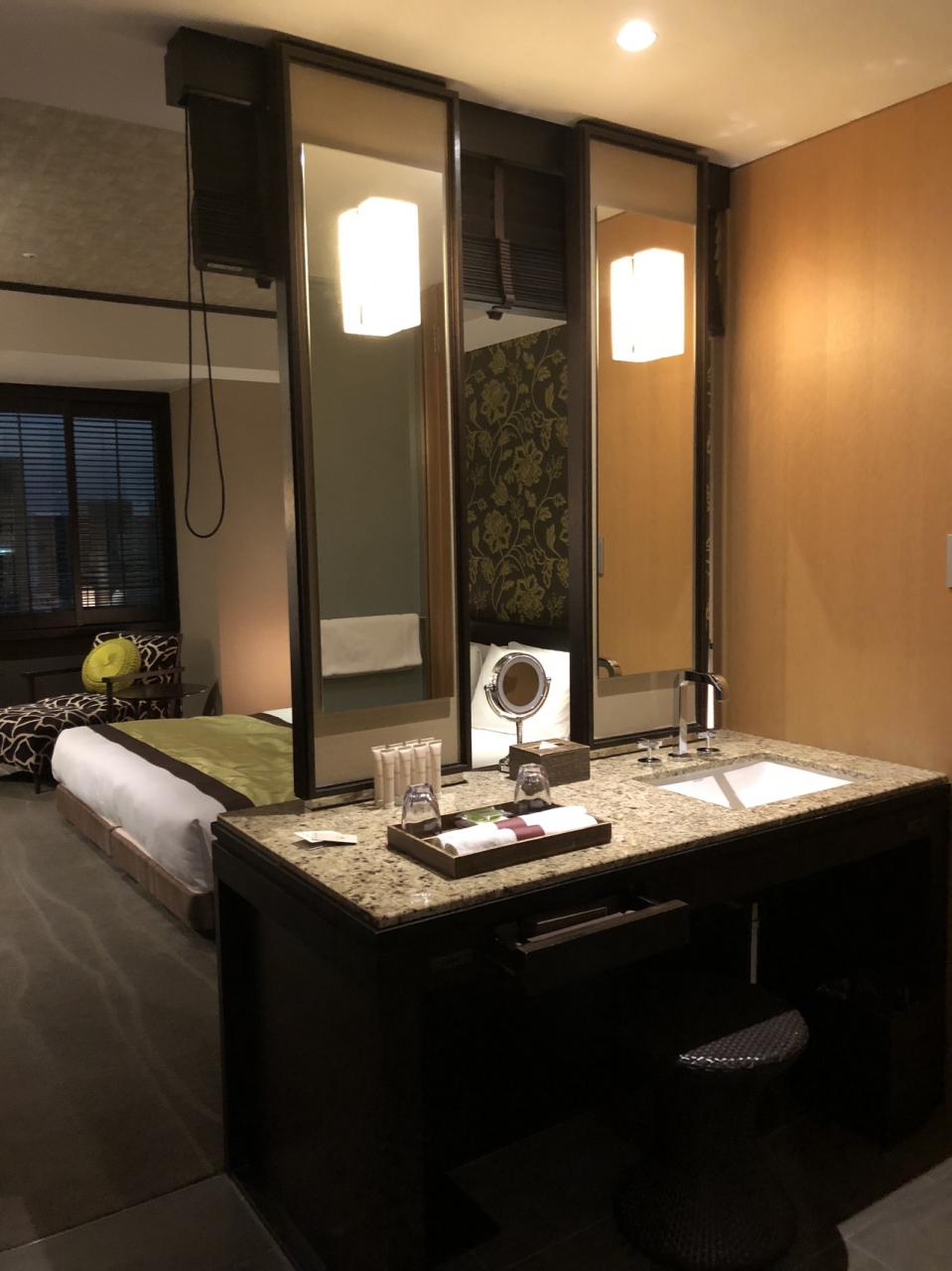 レセプションは17F。景色とても良し。お部屋はとってもおしゃれ!家具の高さが比較的低めなのと心なしか壁も少ないのでお部屋が広く感じます。アメニティーはオムニサンス。なんだか全てが良い感じ。