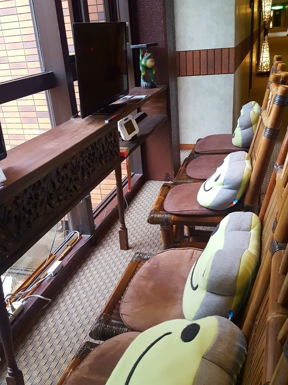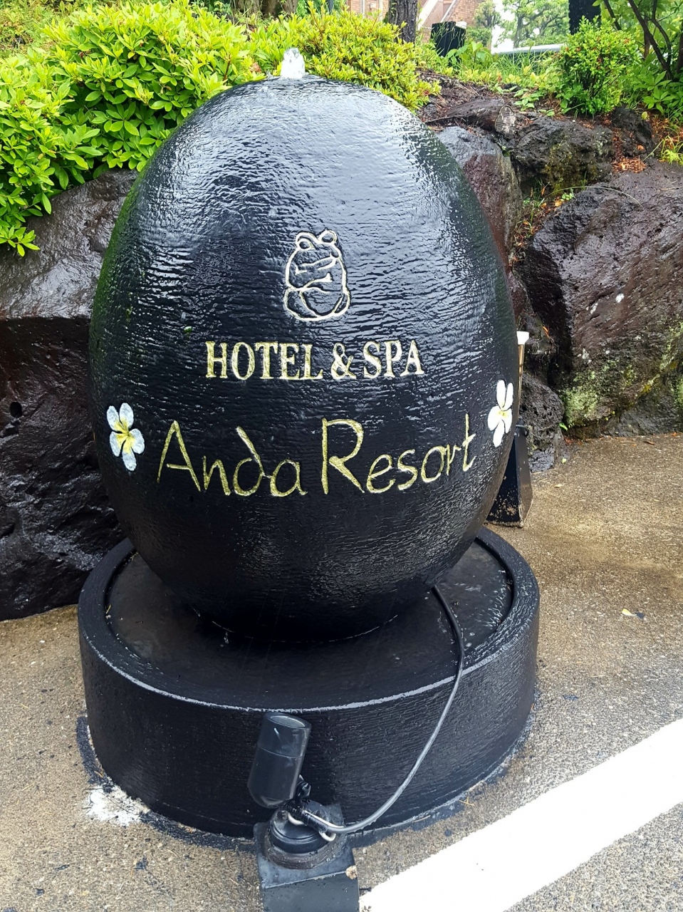 バリ島風のホテル。食事はとてもおいしいです。夕食のコースのメインはおかわりできます。バータイムはバイキング。朝食は半バイキング。朝食以外はアルコールも無料!!カラオケや漫画、ゲーム、ダーツ、卓球、ビリヤード等遊ぶものがたくさんあって退屈しません。カラオケでの飲み物も無料です。この日はバリの衣装体験もやってました!!記念写真も無料でもらえます。ホテル内はカエルだらけです。とにかく宿泊費に全てのものが含まれているのでコスパ最高です。