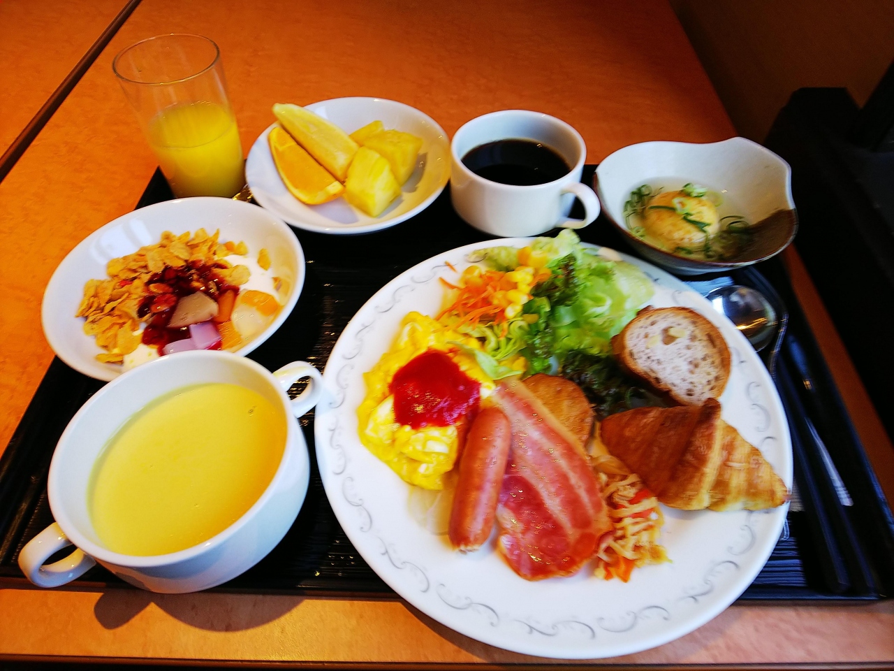 翌朝の、朝食バイキングは和・洋一通りのものが揃い、明石焼きといった地元の食材もありました。これで¥5000なら十分です。ホテルの道路向こう斜め前には「」湊川神社があり、観光客のみならず地元の方もお参りしていました。神戸観光の拠点として、コスパのいいホテルだと思います。