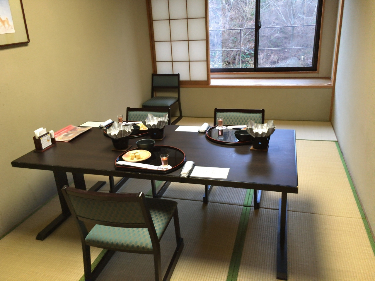 - 夕食は、2階個室で懐石。朝食は、2階大広間で和定食+バイキング