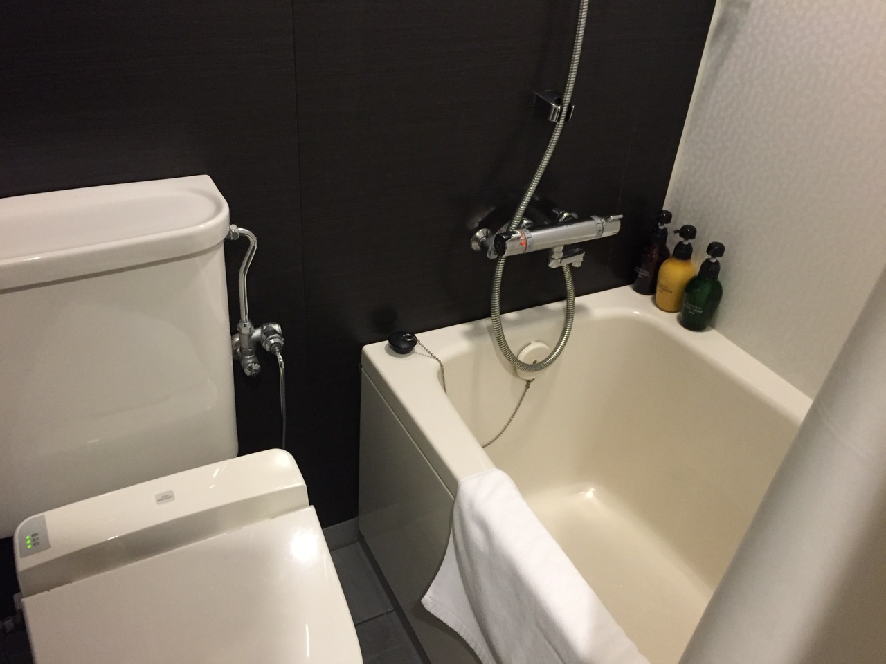 比較的新しいホテルのようで、部屋はとても綺麗です。少し狭いように感じますが、ビジネスホテルとしては十分。お風呂とトイレが一緒の一般的なユニットバスですが、掃除が行き届いていて清潔です。