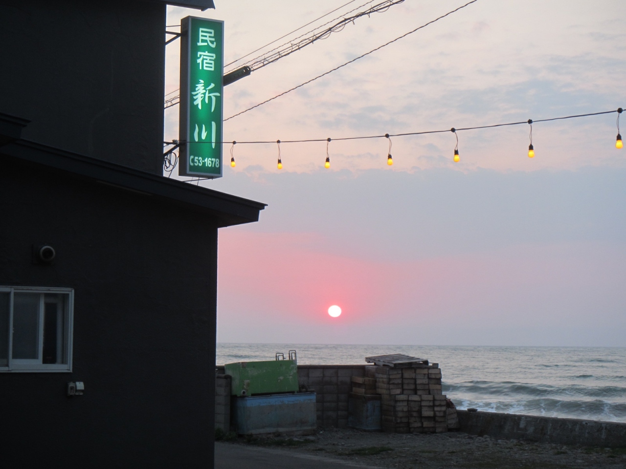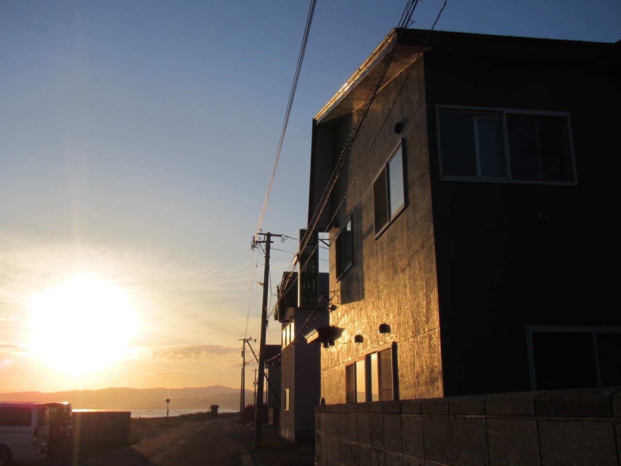 増毛の街の海岸線沿いにある宿で、部屋や宿の前から日本海に沈む夕日が眺められます。