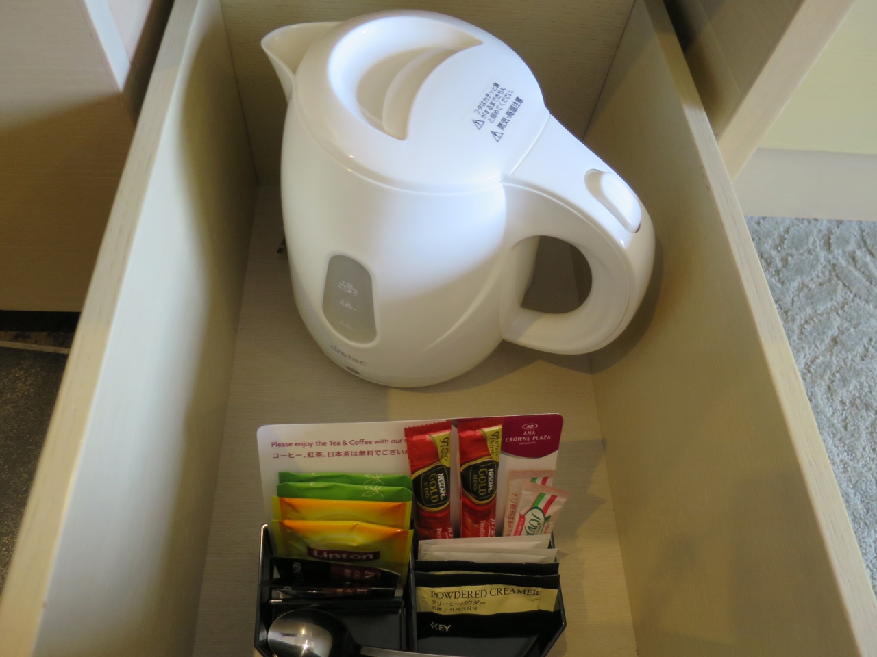 金沢駅前、直結しているわけではないので雨が降っていたら少し濡れますが、翌日の早朝に出発する新幹線を考えたら、本当に楽です。吹き抜けのロビーには水も流れていて豪華な雰囲気です。チェックインではIHG会員向けのボトルウォーターとコーヒーをいただいて客室に向かいました。アサインされたのはプレミアムフロアのスーペリアツインです。ドアを開けた客室に入った足元には剥落した金箔のデザインと、金沢を感じます。客室に小物類が一切なく、非常にシンプル、29.3平米という表示面積以上の広さを感じます。客室の窓から金沢駅を象徴する”もてなしドーム”と”鼓門”を目にできるのも金沢を実感できます。バスルームのデザインやバスアメニティもANAクラウンプラザ標準といったもので十分に満足できるものです。