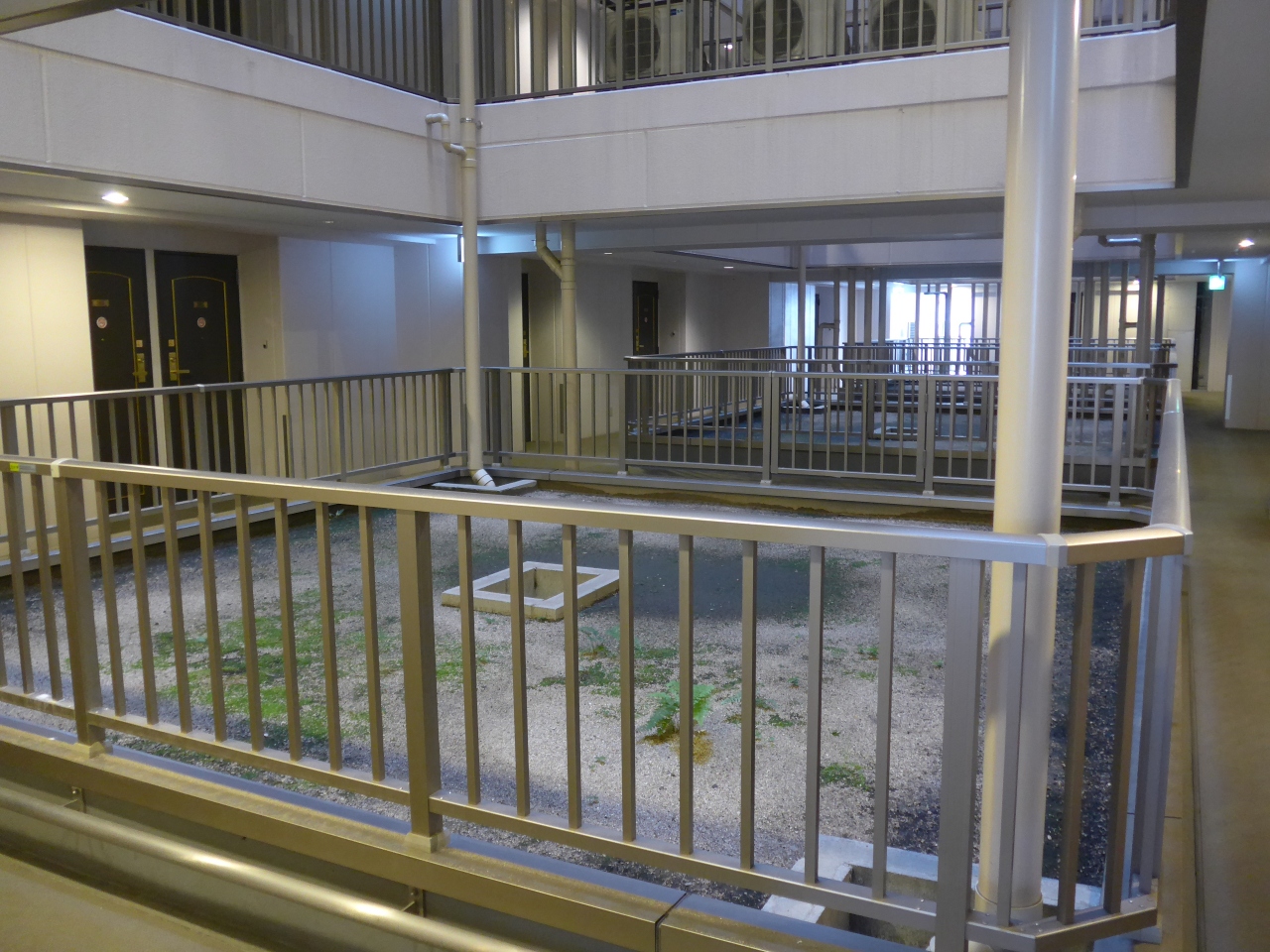 作りが少し面白くて各フロアは吹き抜けで外壁が無いのでドアをの外は室外になっている感じで外気も自然のままなのでマンションの入り口と言った感じです。