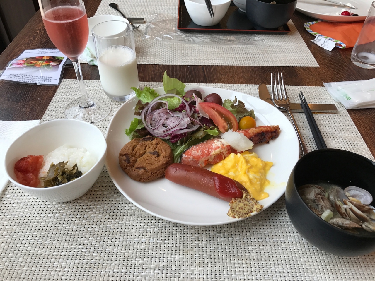 朝食のバイキングは、種類も豊富でスパークリングワインも飲めちゃいます。