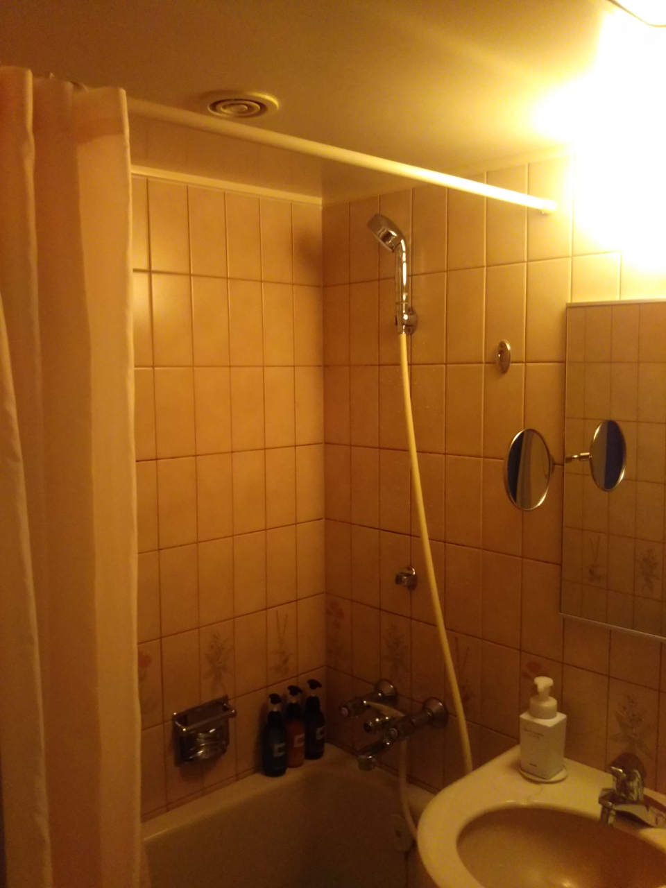 JR広島駅南口近くのホテルです。歩いて5分ぐらいです。やや設備は古く、空調も古くバスルームも狭い方ですが、必要なものはそろっており、掃除も行きとどいており清潔です。近くにはコンビニや飲食店があり、便利です。