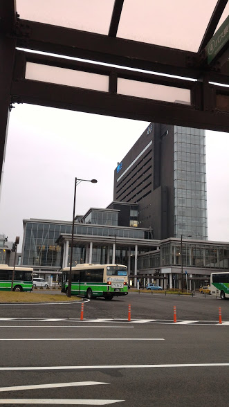 高速バスのバス停から見えるところにありました。バス停からホテル入り口まで屋根が付いているので雨の日でも傘不要です。JR秋田駅とは建物が繫がっています。