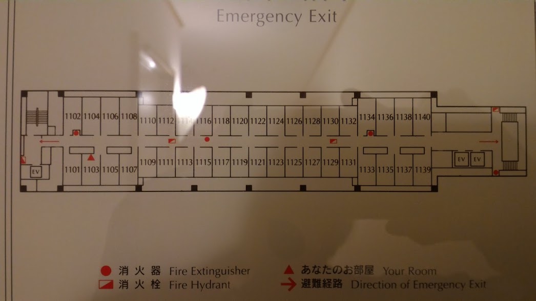 複合ビルの中に入っていて、フロントと朝食会場は2階、客室は8~13階と思われます。エレベーター2基、フロアには40室ありました。ビルの中には飲食店やコンビニもあって便利です。