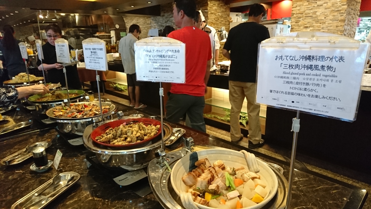 朝食は日替わりのおかず(ちゃんぷるーなど)が6種類あり、沖縄料理やパン・スイーツなどがあっておいしかったです。