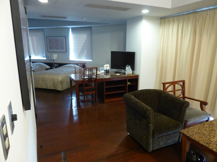 室内はコンドミニアムでツインベットにテーブルとソファーが置かれソファーの一つはベットになるようです。