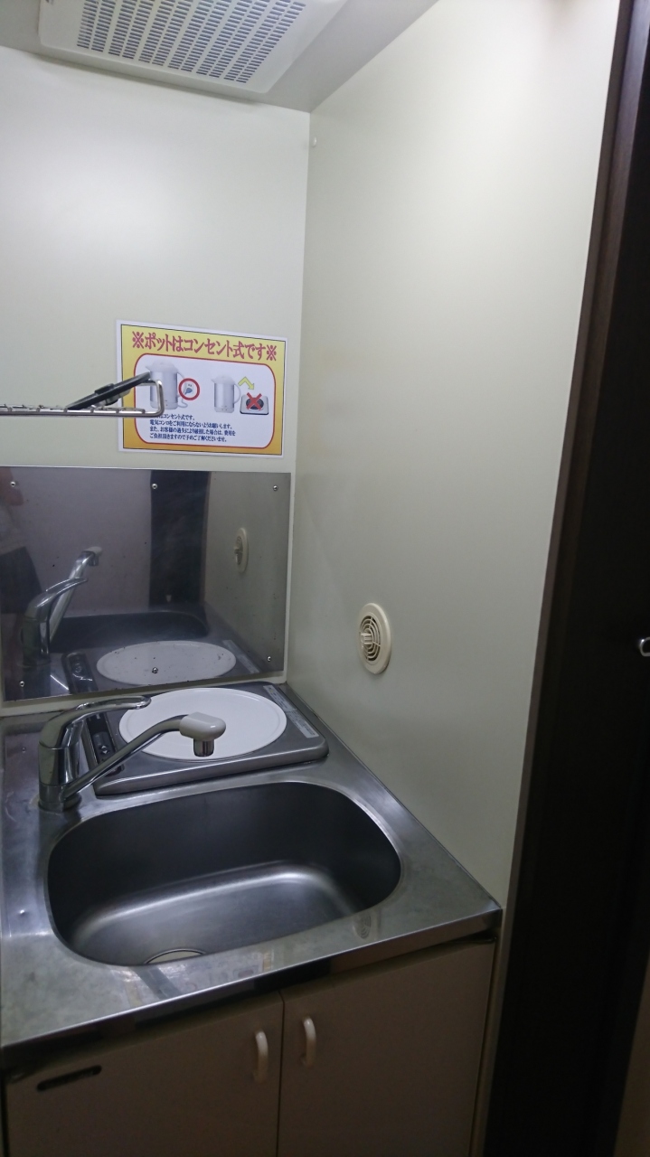 小さいキッチンに電気調理器があるので、長期滞在にはホテルよりも便利かなと思います。