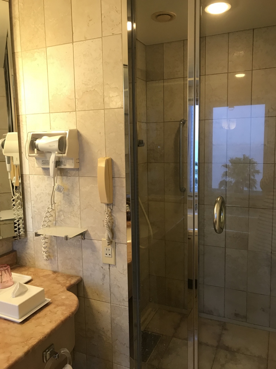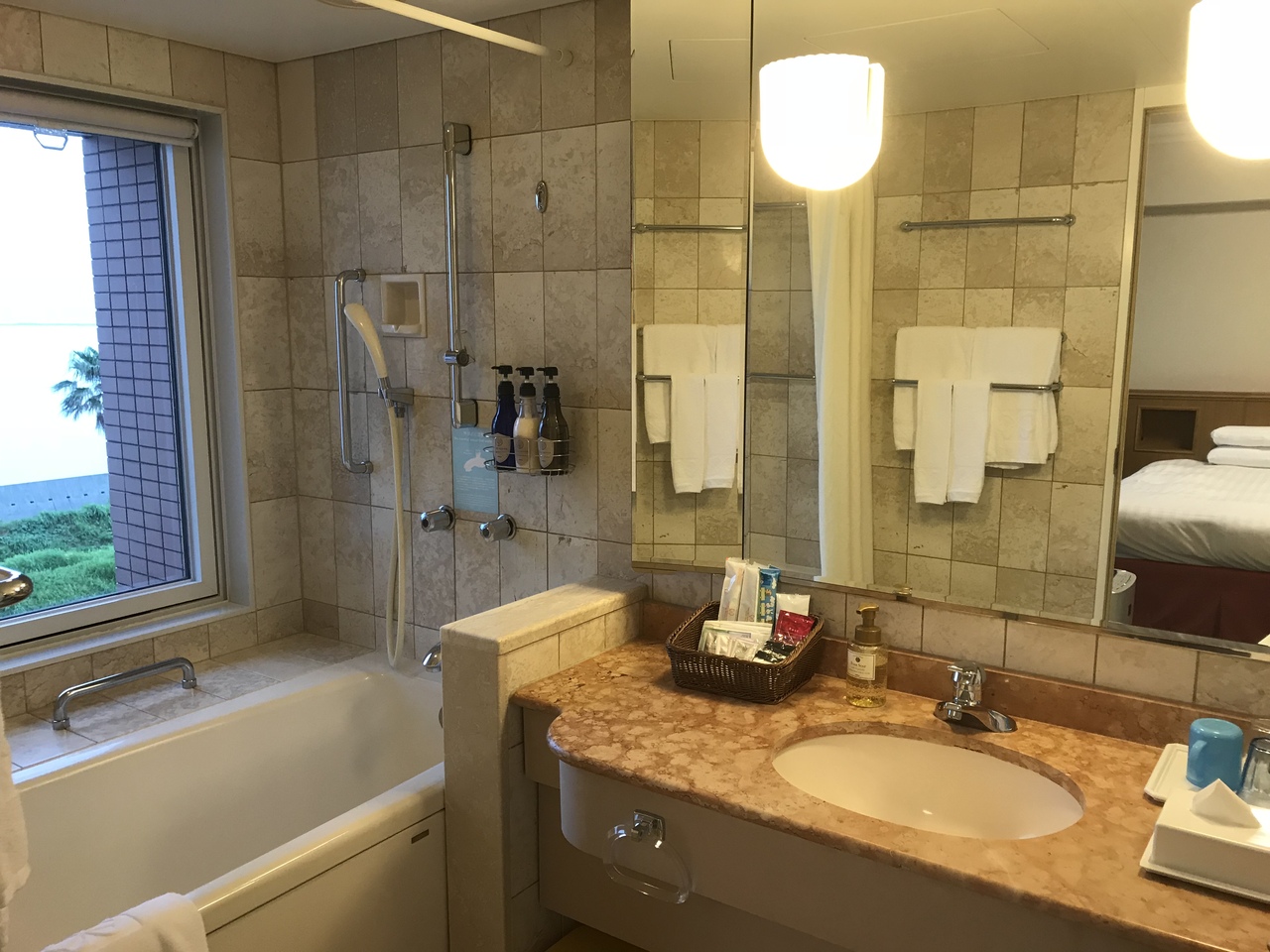 海が見えるビューバスとシャワーブースもありました。バスルームに窓があると明るくて◯