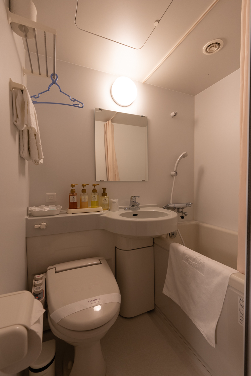 バスルームはユニットバス。アメニティはシャンプー、コンディショナー、ボディソープなど一通り揃っています。