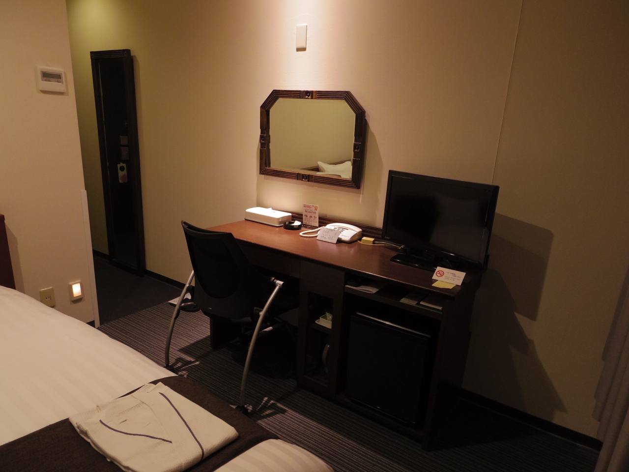 客室は、ベッドとユニットバス、テレビなどを置いた机、小型冷蔵庫と典型的なビジネスホテルのつくりでしたが、ゆっくり休めました。