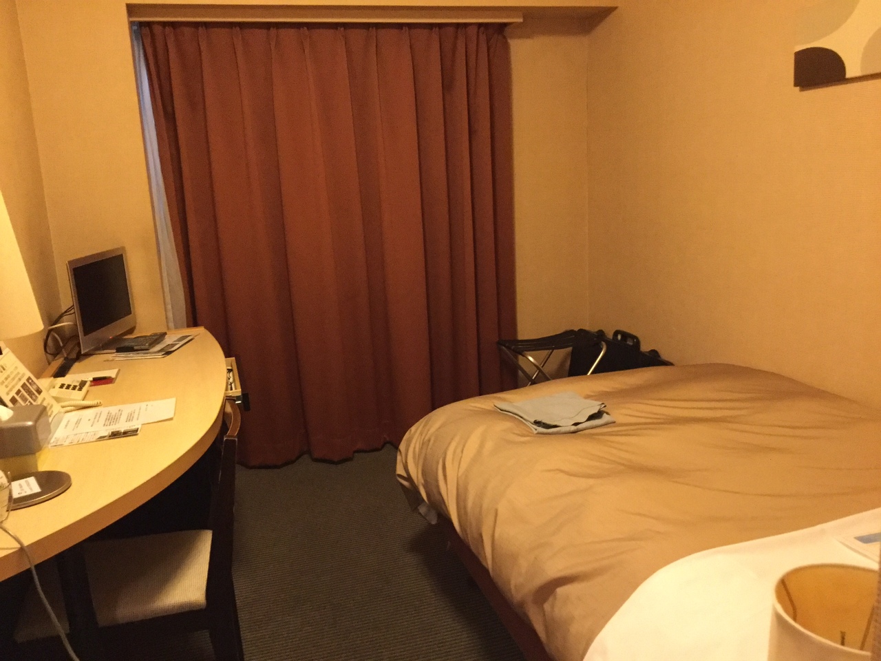 部屋は普通のビジネスホテルですが、スーツケースを広げるスペースはあります。